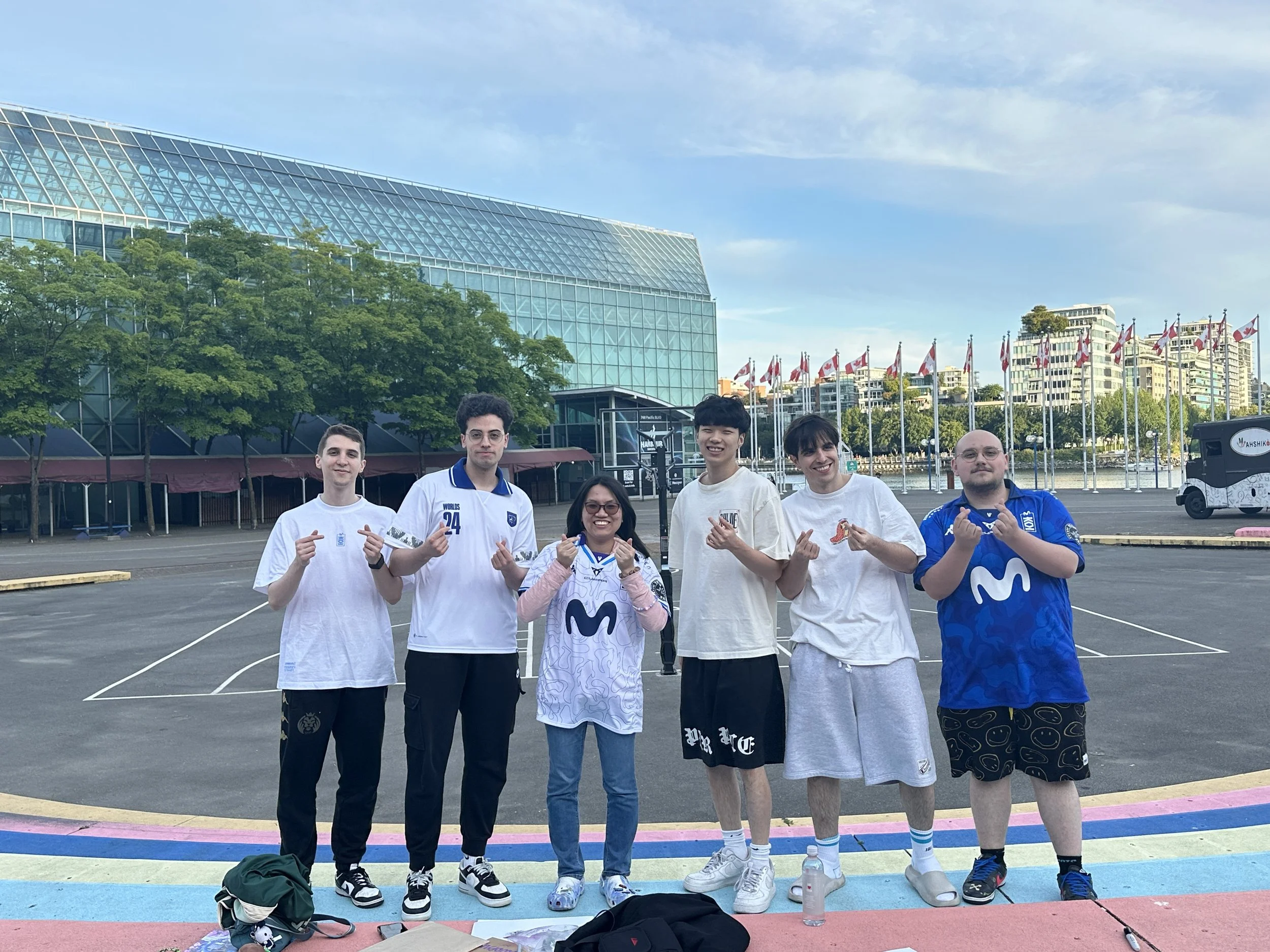 Alvaro was leading the charge like an engage support, bouncing a basketball. Elyoya followed a bit behind him beside Melzhet, and he had a hand in his pocket as he walked. Jojo and Supa were behind them. And Myrwn wore a blue MKOI jersey, standing out among all the neutral colors everyone else wore.